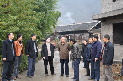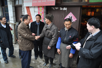 吴道生书记(左五)、况忠辉副书记(左四)听取大坪村连户路建设情况汇报 走访慰问困难群众
