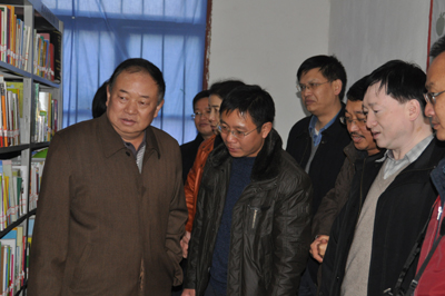吴道生书记(左一)、况忠辉副书记(右二)考察农家书屋建设情况 吴道生书记(右三)向何家完小捐助5000元建立“地矿奖学金”