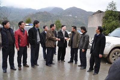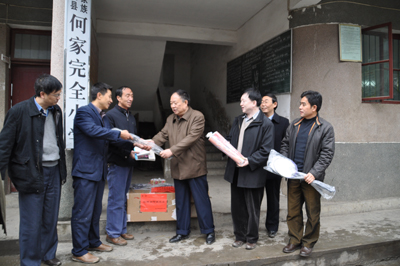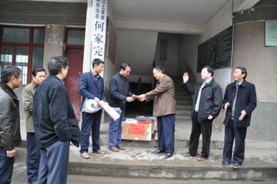 2009年12月12~13日,由省人大内务司法委员会副主任(原省地矿局党委书记、局长)吴道生、局党委副书记况忠辉同志带队,率局人事教育处处长杨永忠、局党办主任何毓敏、党办副主任欧德琳、局纪检监察室主任王玉光、省地质工会主席钟惠明、局离退休管理处处长吴健、局机关党委副书记冯文琦、局离处调研员牛天荣、103队党委副书记杨通廷、局机关欧阳成卓、邹学红、宋玲等一行二十余人冒着严寒,从贵阳出发,驱车前往铜仁印江县杉树坳乡大坪村开展“十万干部下基层”活动。与当地干部群众广泛接触、亲切交谈,走访慰问了当地困难群众,给大坪村何家完小学送去篮球、羽毛球、乒乓球等体育器材,并当即捐助五千元在该完小建立“地矿奖学金”,形成长效机制每年坚持,实实在在为当地群众办好事办实事,表达了省地矿局党委对印江大坪村人民群众的深情厚谊。