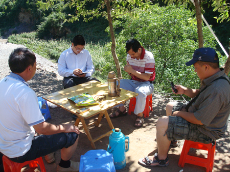8月15日中午,杨德智副队长一行抵达威宁县石门乡狮子洞铅锌矿山,在听取了合作方及矿山相关技术人员对矿山生产建设基本情况介绍后,在合作方的陪同下,深入矿井实地调查了解,并到矿化点现场取样和进行综合整理后,提出了矿山下一步找矿工作指导意见。