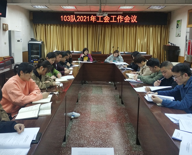 4月23日下午,103队组织召开2021年工会工作会议。会上,队党委副书记、纪委书记、工会主席严学春同志传达学习了全总十七届四次执委会议、省总工会十四届五次全委(扩大)会议、省地质工会四届五次全委(扩大)会议、103队第十三届三次职工代表暨会员代表大会等文件精神及要求,并对工会2021年的重点工作进行了安排部署。